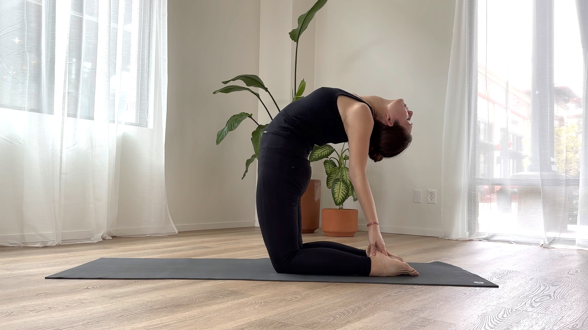 Camel pose opens the front throat, chest, and heart space.